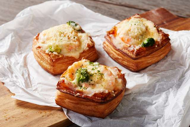 サクッとしたデニッシュ生地に、海老とベーコン、じゃがいも、ブロッコリーを包み込んだ濃厚グラタン。クリーミーなソースと香ばしい生地の組み合わせが、冬らしい満足感をもたらします。