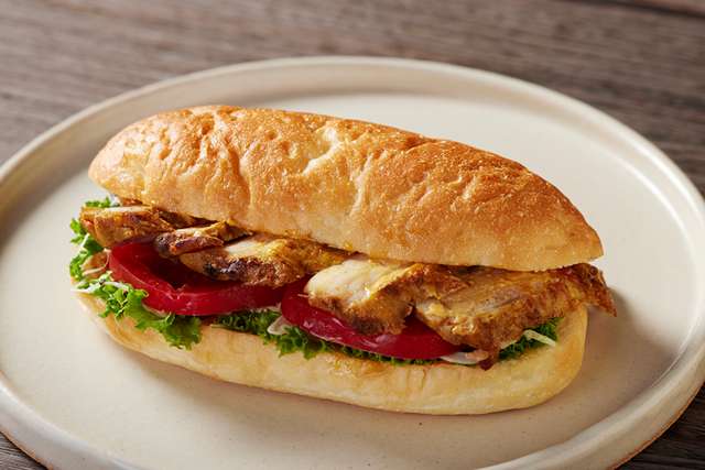 スパイスに漬け込んだ鶏肉をじっくり焼き上げ、香り高く仕上げました。スパイシーな香りが食欲を誘う、寒い日にうれしいサンド。